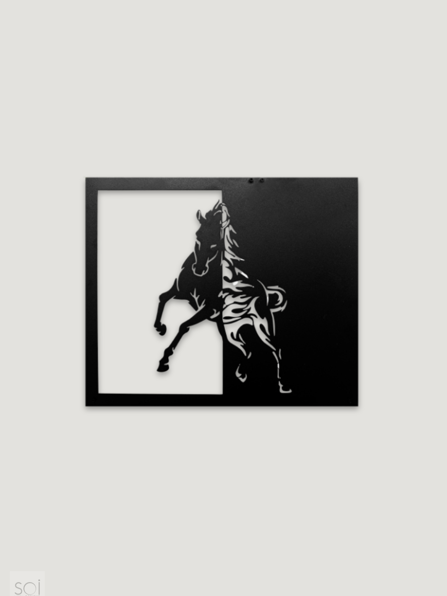Minimal ama etkileyici formuyla öne çıkan Equinox at silüeti metal duvar tablosu, modern dekorasyon anlayışına güçlü bir dokunuş kazandırır.
