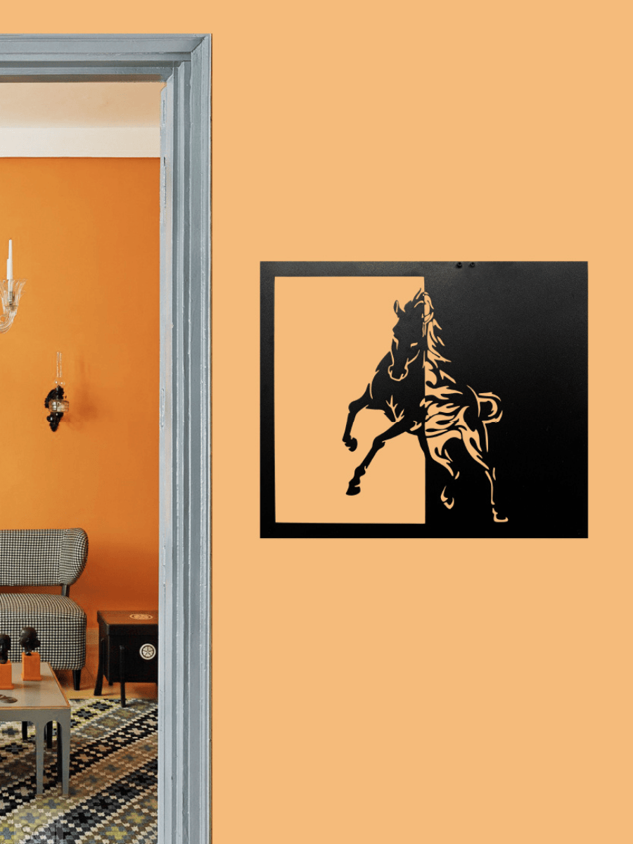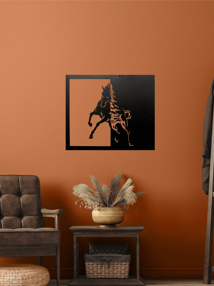 Dayanıklı yapısı sayesinde uzun ömürlü kullanım sunan Equinox at silüeti metal duvar tablosu, formunu ve rengini uzun süre korur.