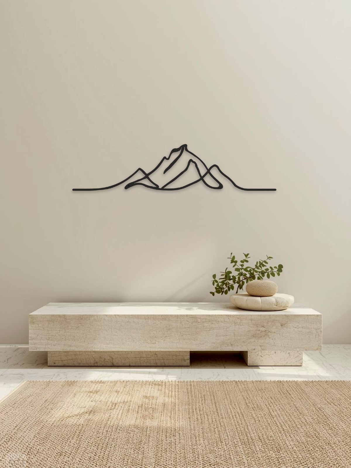 Montara dağ silüeti metal duvar tablosu, salon, antre veya yaşam alanlarında sade ama güçlü bir odak noktası oluşturur.